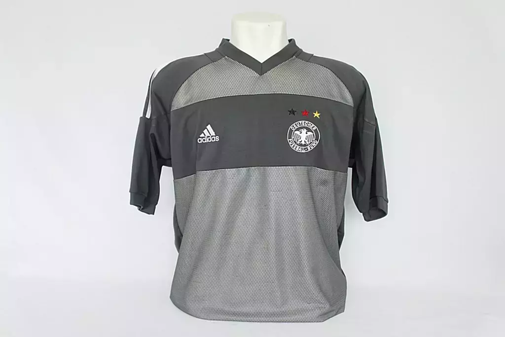 Camiseta da seleção alemã utilizada na copa do mundo de 2002. Peça bem preservada, possui apenas um fio puxado. Item original da época.